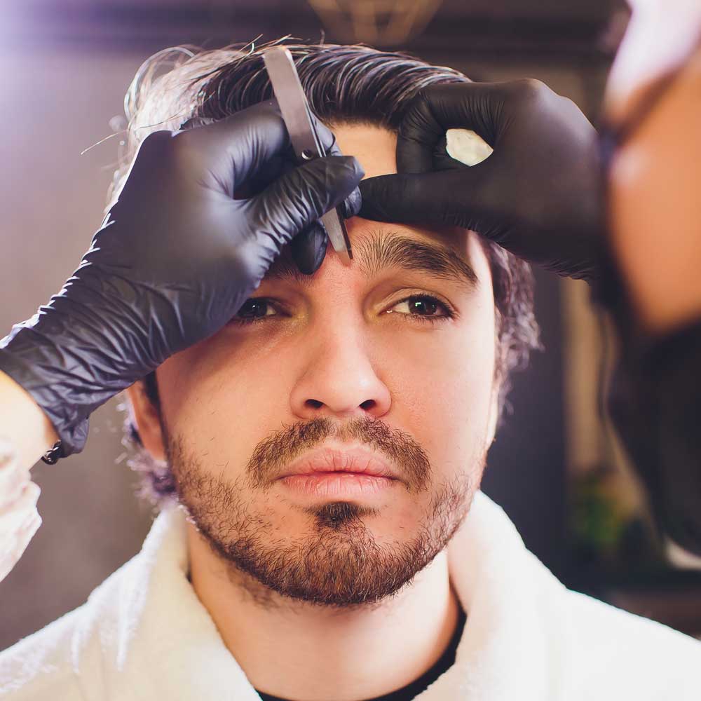 El perfilado de ceja masculino se realiza con precisión, manteniendo un acabado limpio, natural y bien definido, sin exagerar.